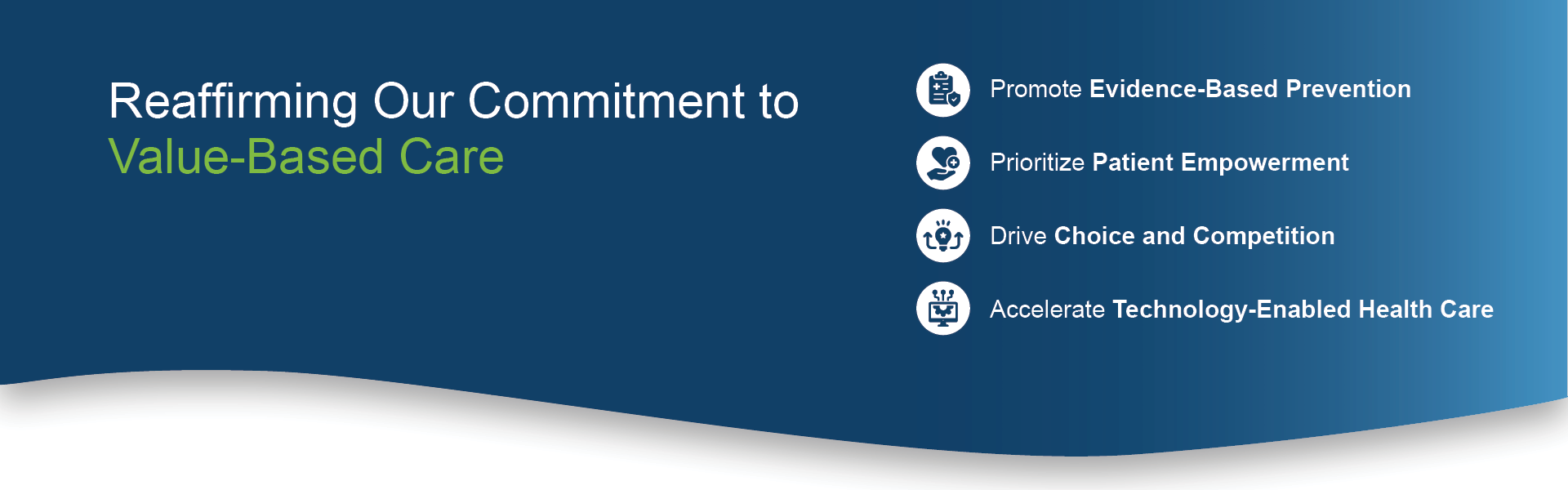 Promote Based Prevention Prioritize Empowerment Drive and Competition Accelerate Technology-Enabled Health Care Choice Evidence- Patient Reaffirming Our Commitment to